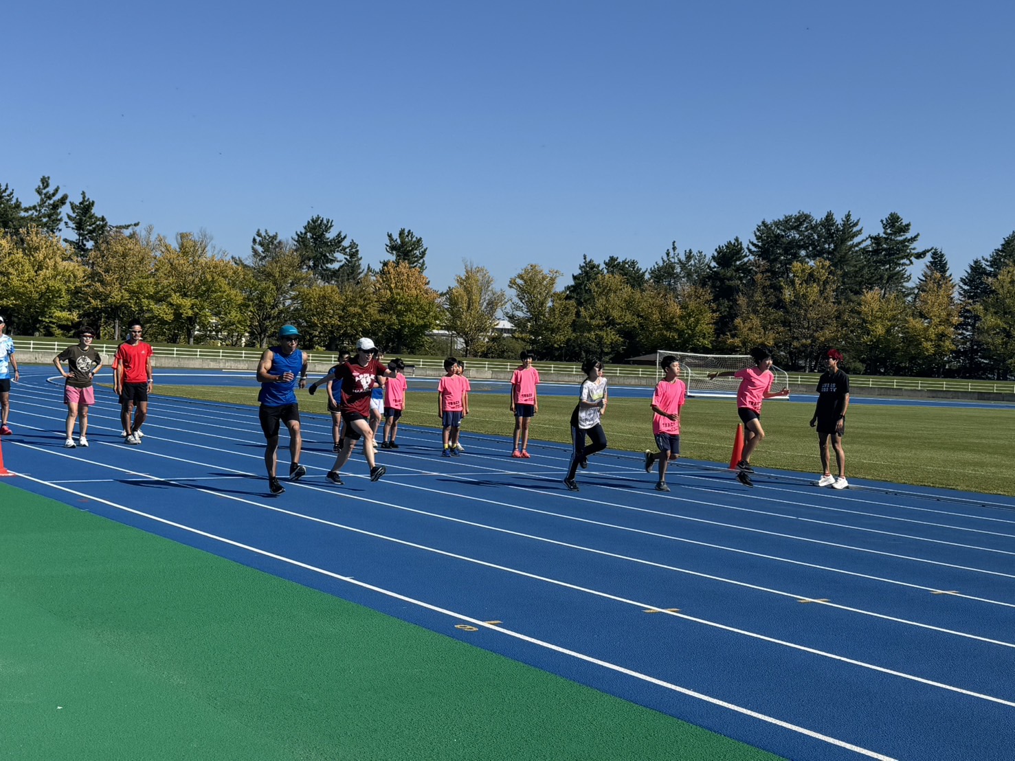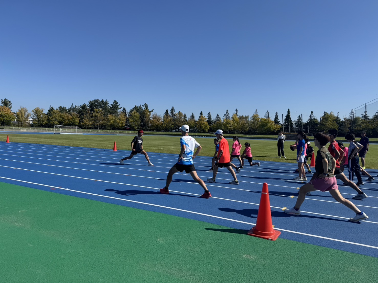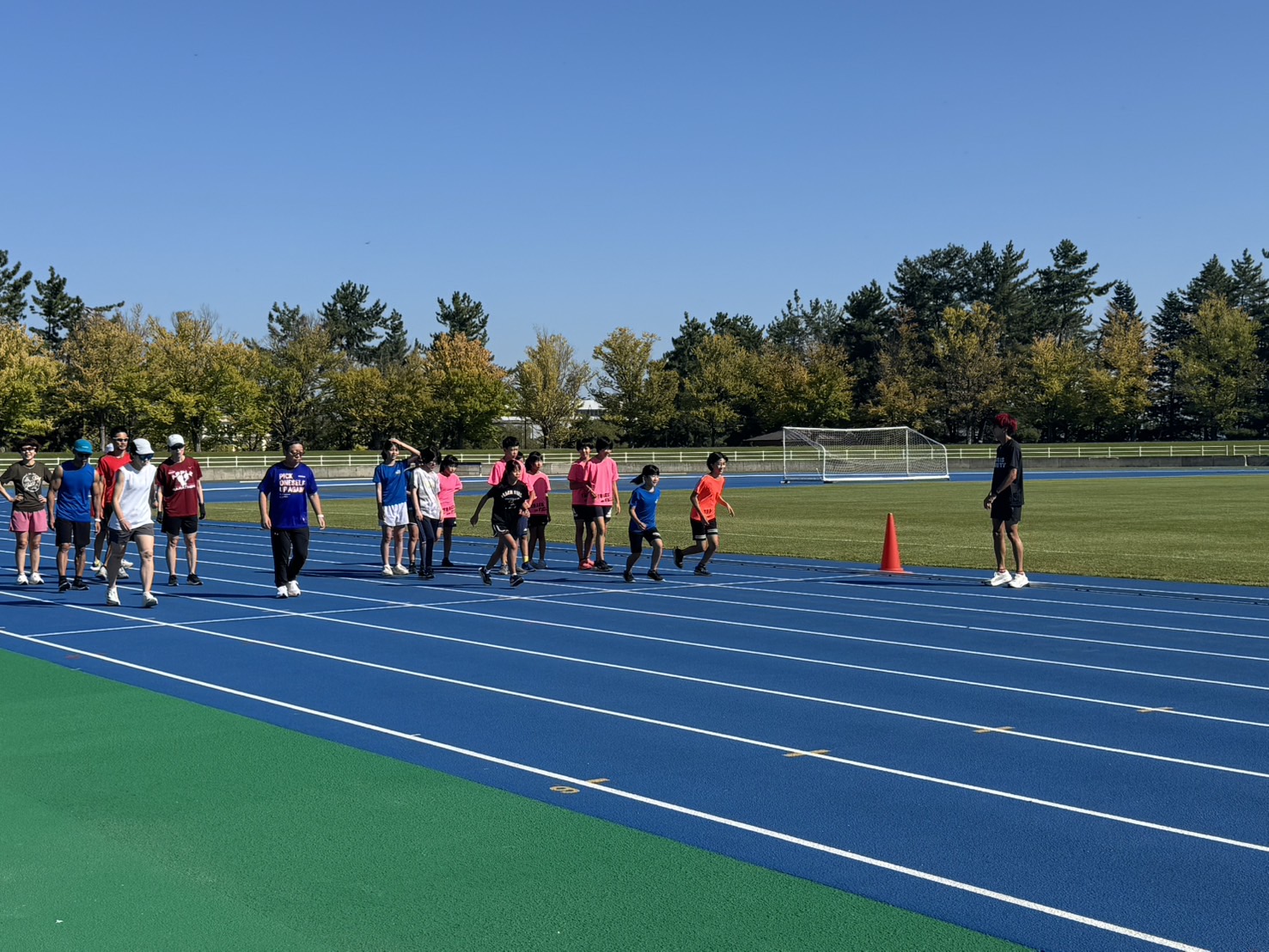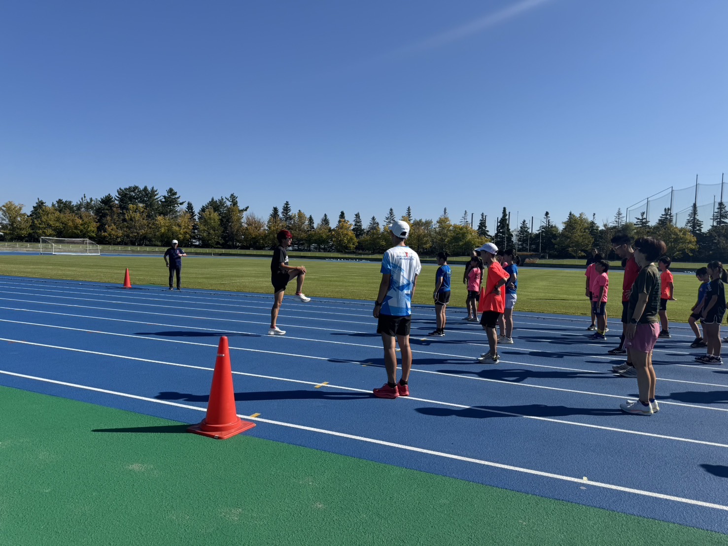10月4日(土)招待選手のこわだ君による「ランニングクリニック」を弘前市運動公園陸上競技場で開催しました。 晴天にも恵まれ、こわだ君からランニング時の体の使い方を学んでいました。 明日大会に参加される皆さんがそれぞれ秋の津軽路を楽しんで走り、笑顔でゴールすることを念願しております。 また、スタッフのみなさん明日は朝早くからよろしくお願いいたします。