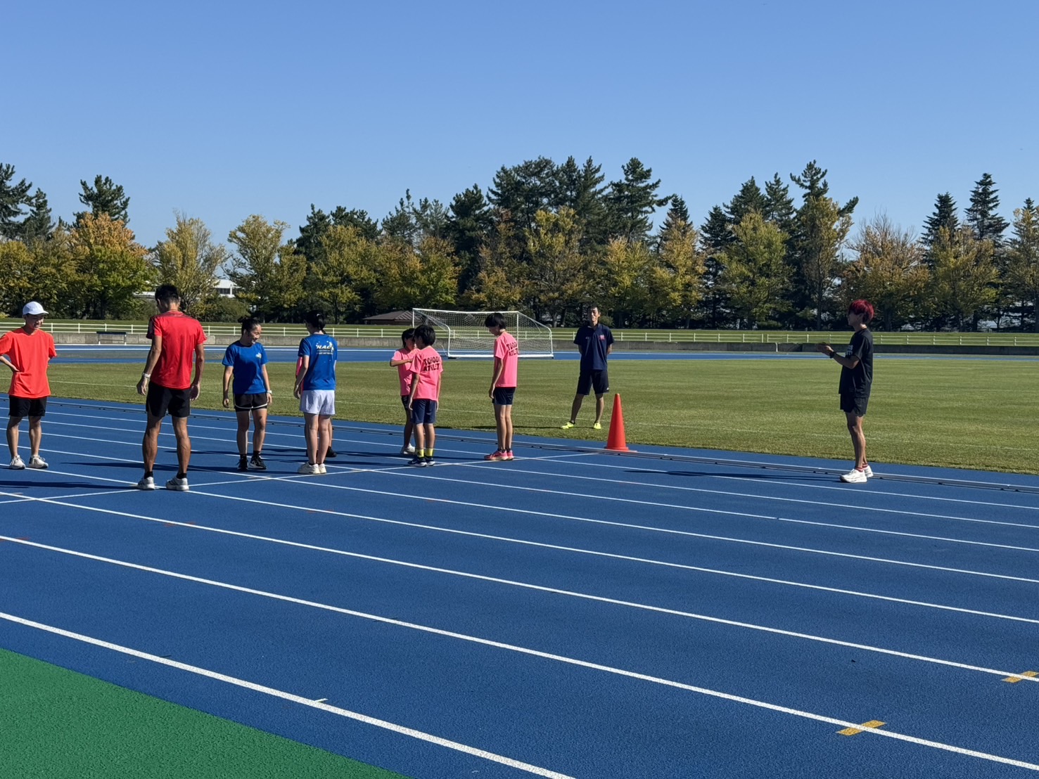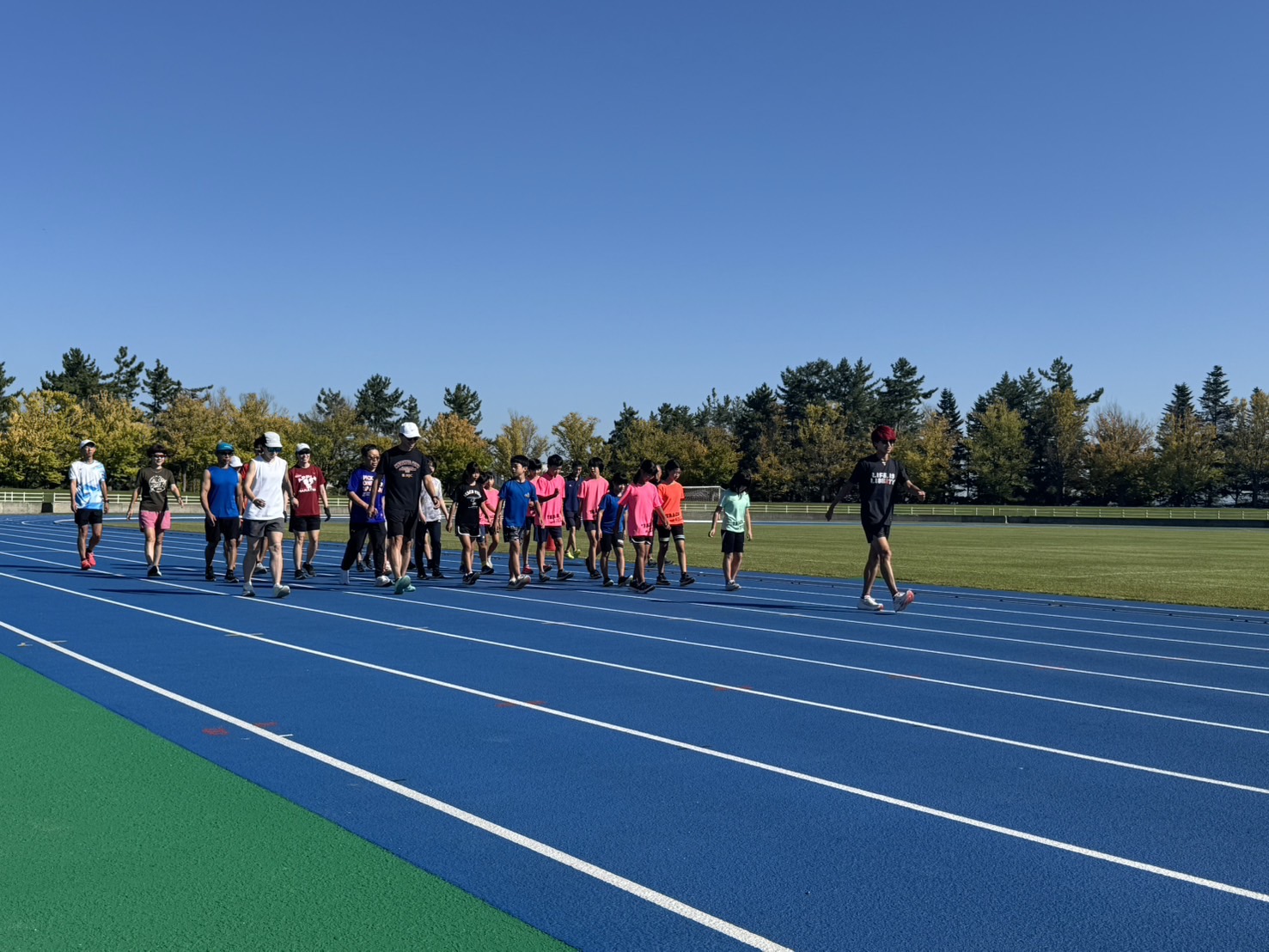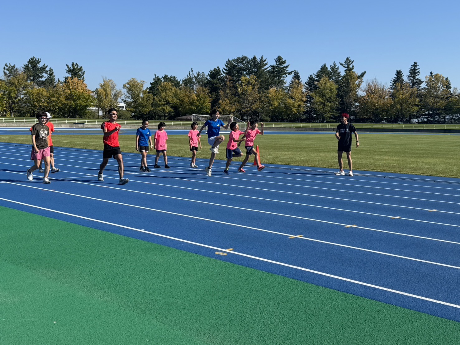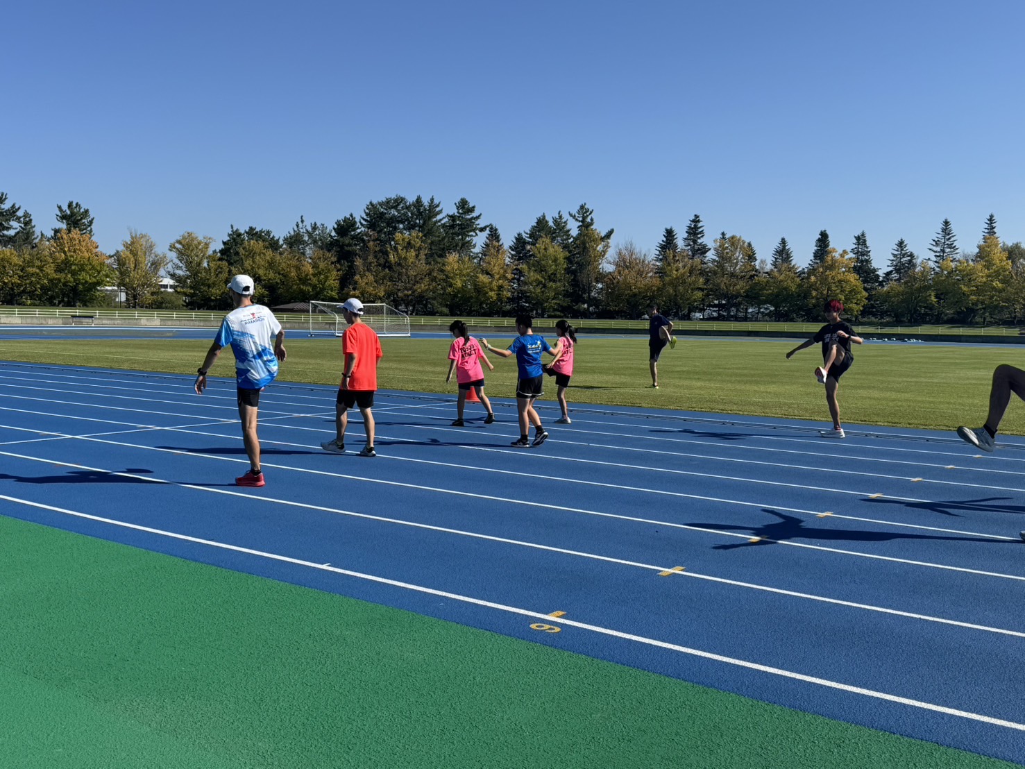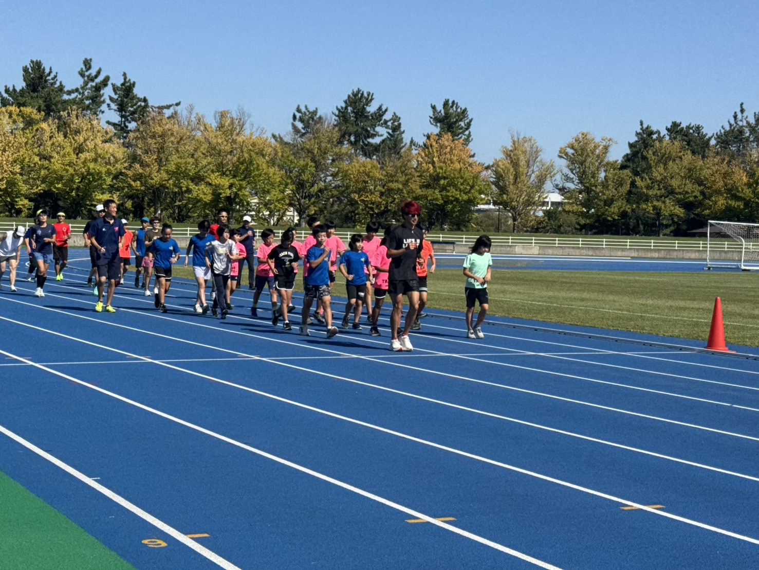 10月4日(土)招待選手のこわだ君による「ランニングクリニック」を弘前市運動公園陸上競技場で開催しました。 晴天にも恵まれ、こわだ君からランニング時の体の使い方を学んでいました。 明日大会に参加される皆さんがそれぞれ秋の津軽路を楽しんで走り、笑顔でゴールすることを念願しております。 また、スタッフのみなさん明日は朝早くからよろしくお願いいたします。