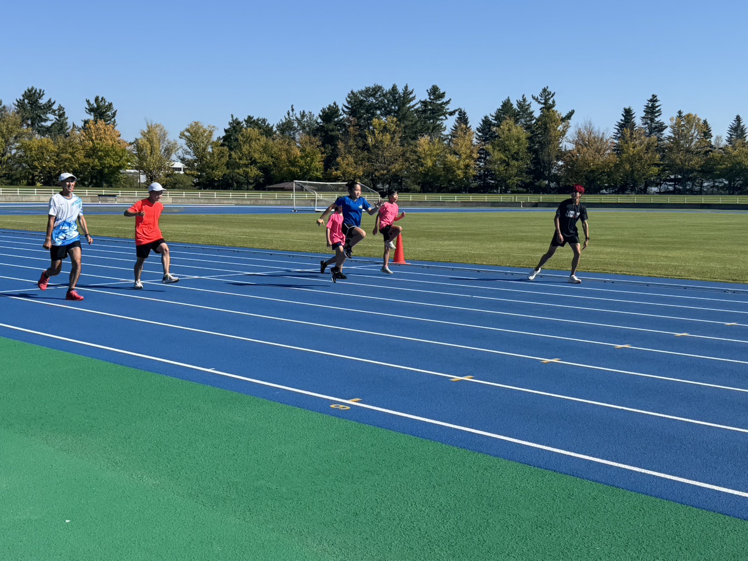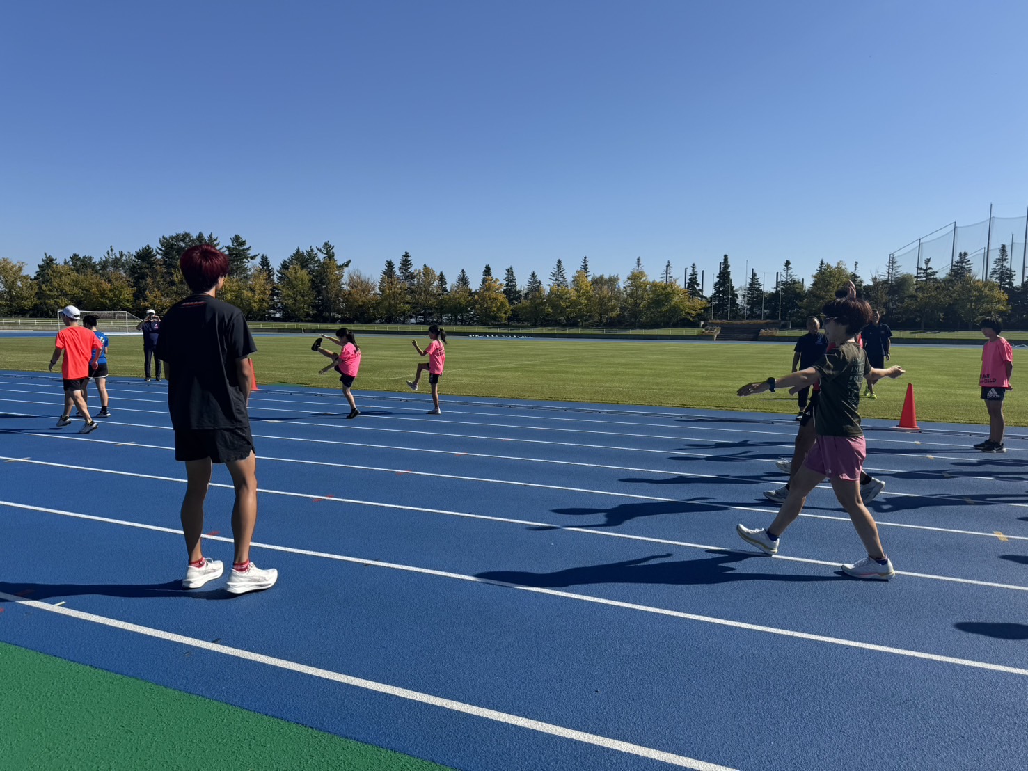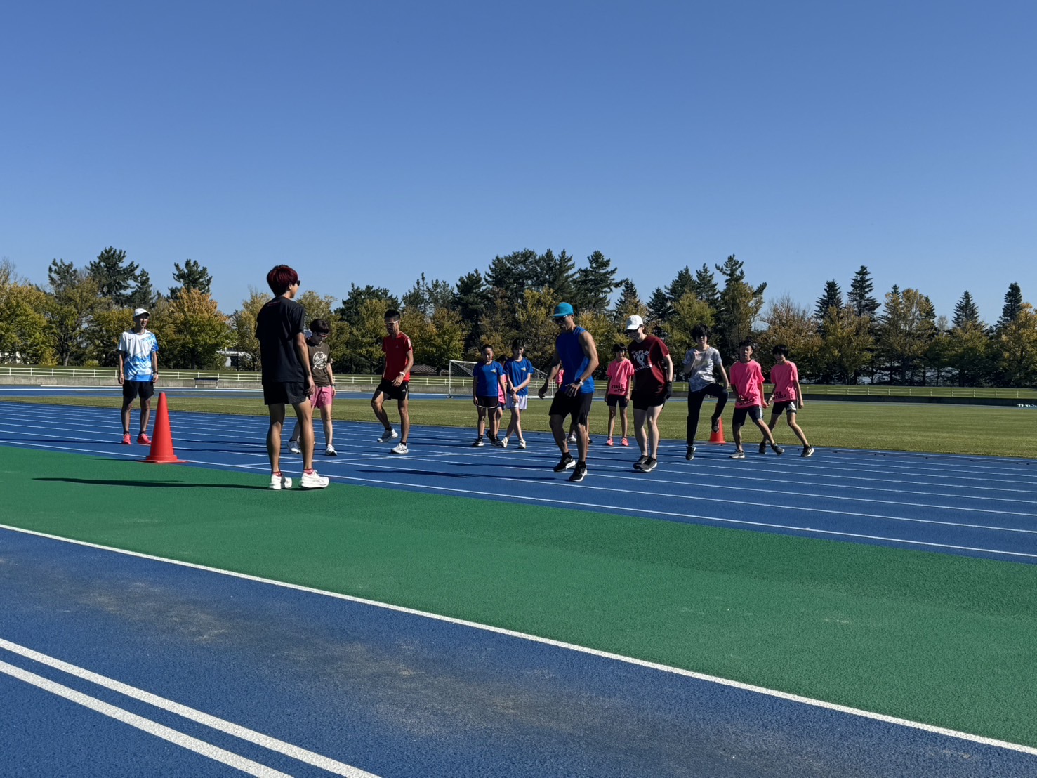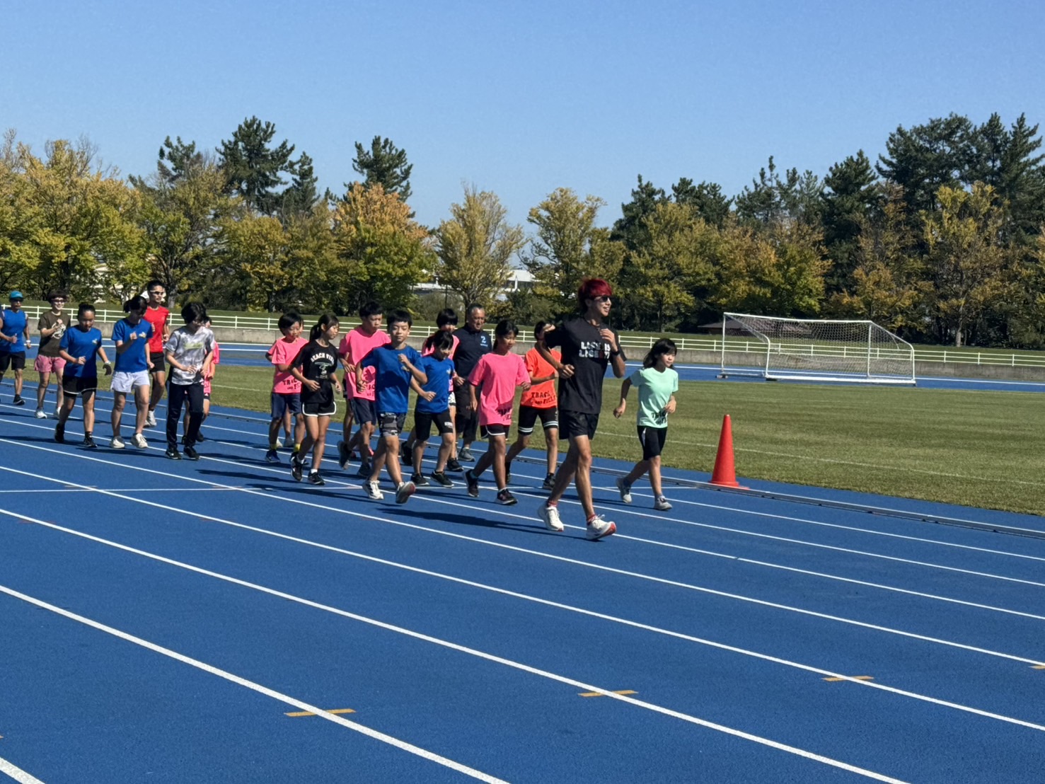 10月4日(土)招待選手のこわだ君による「ランニングクリニック」を弘前市運動公園陸上競技場で開催しました。 晴天にも恵まれ、こわだ君からランニング時の体の使い方を学んでいました。 明日大会に参加される皆さんがそれぞれ秋の津軽路を楽しんで走り、笑顔でゴールすることを念願しております。 また、スタッフのみなさん明日は朝早くからよろしくお願いいたします。