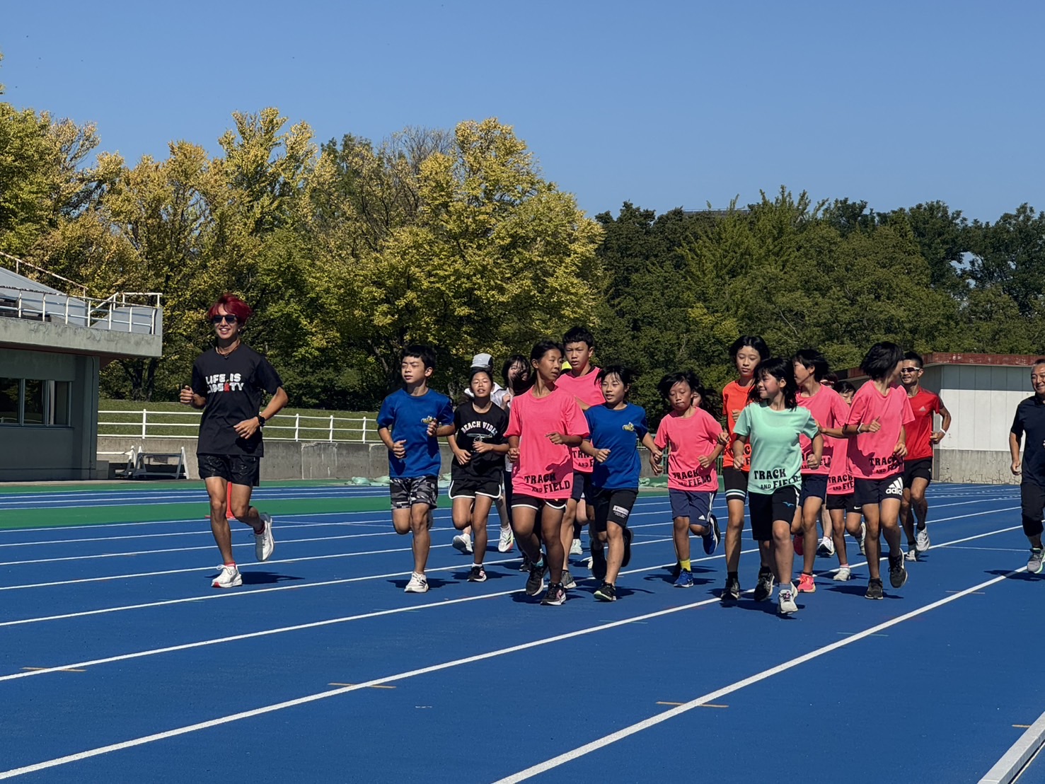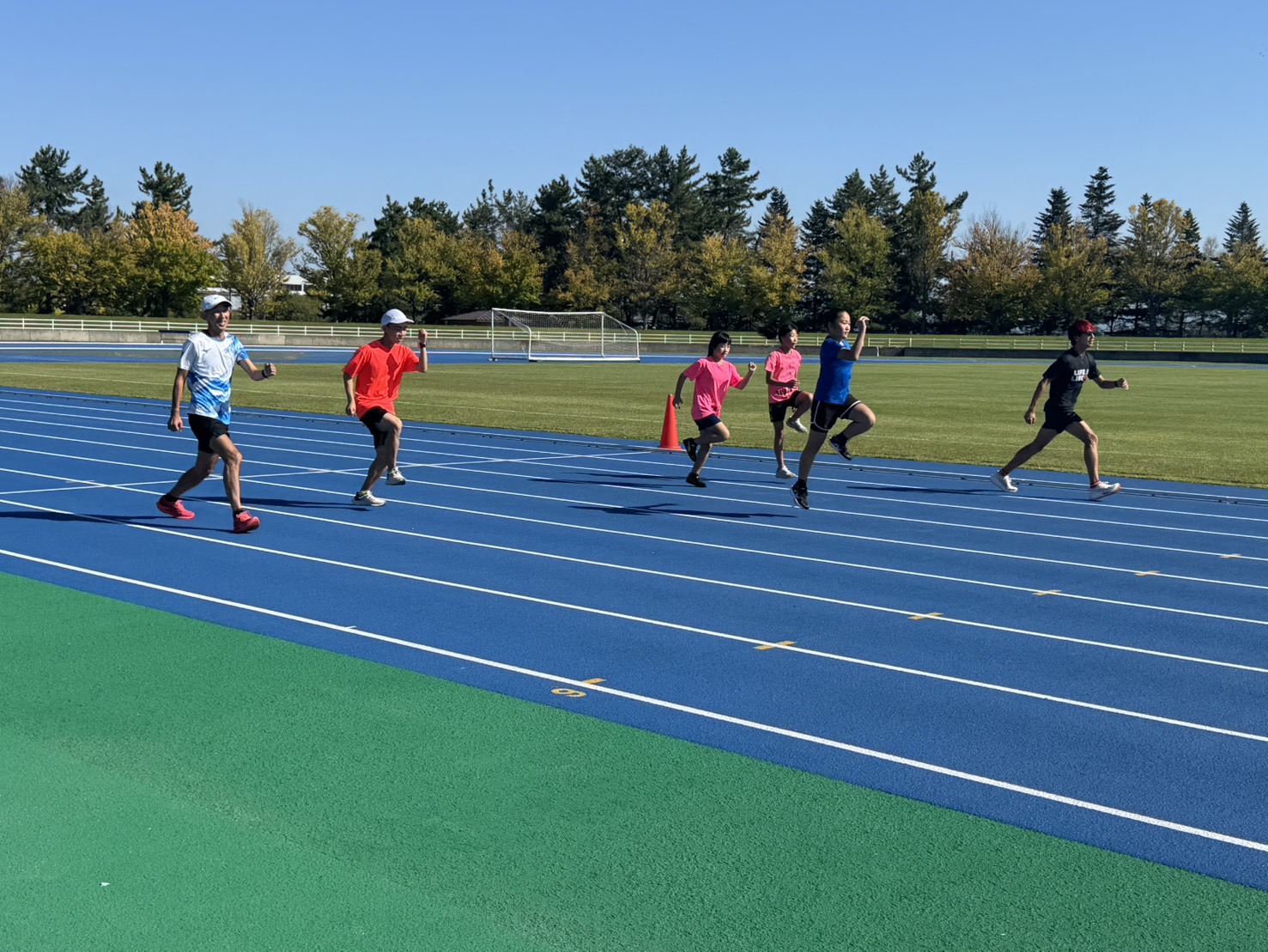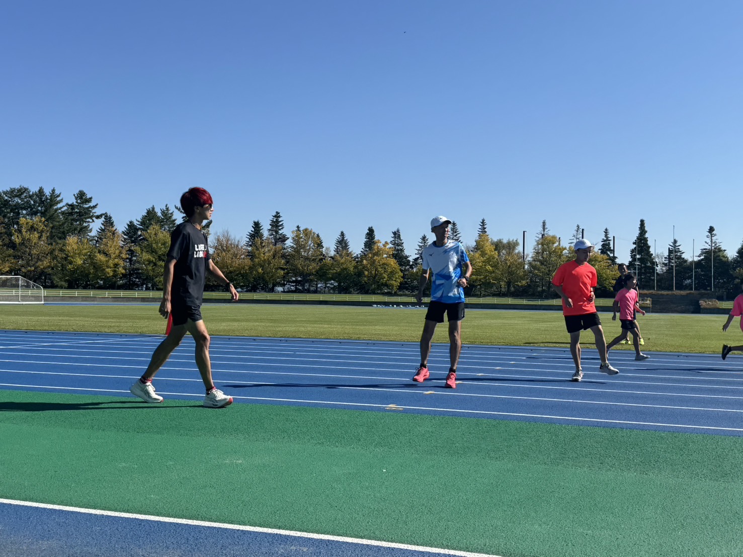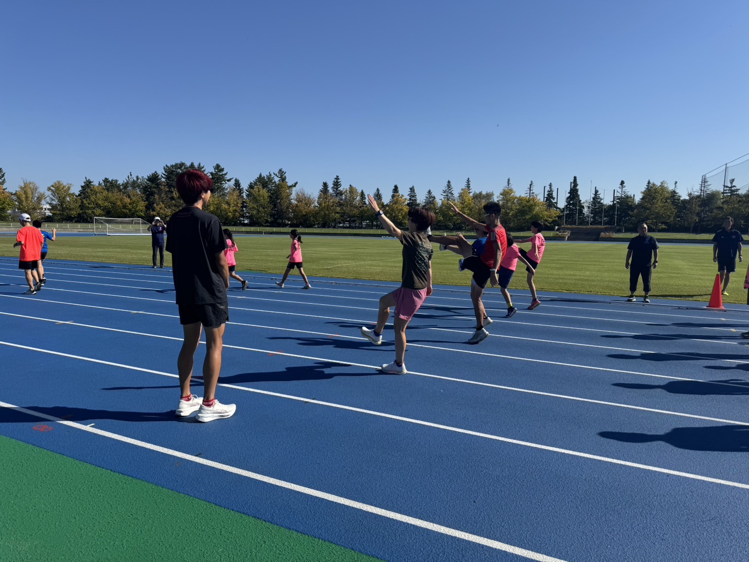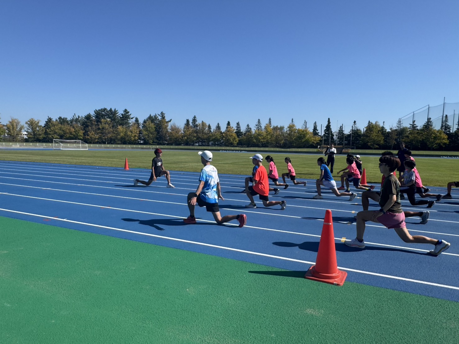 10月4日(土)招待選手のこわだ君による「ランニングクリニック」を弘前市運動公園陸上競技場で開催しました。 晴天にも恵まれ、こわだ君からランニング時の体の使い方を学んでいました。 明日大会に参加される皆さんがそれぞれ秋の津軽路を楽しんで走り、笑顔でゴールすることを念願しております。 また、スタッフのみなさん明日は朝早くからよろしくお願いいたします。